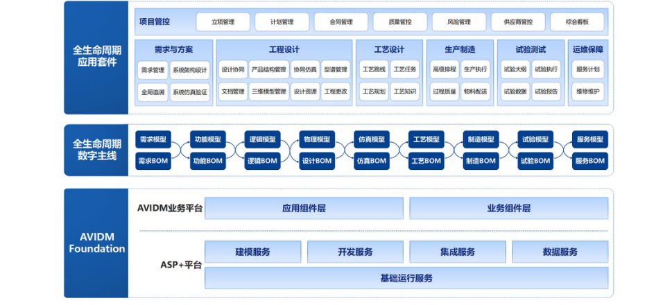 基于神軟ASP+平臺(tái)五大服務(wù)能力開(kāi)發(fā)AVIDM業(yè)務(wù)平臺(tái),實(shí)現(xiàn)了應(yīng)用組件層和業(yè)務(wù)組件層,提供了多種通用及可復(fù)用的功能模塊,面向多個(gè)業(yè)務(wù)應(yīng)用進(jìn)行使用,完成面向工業(yè)軟件的全生命周期支撐。以神軟ASP+平臺(tái)和AVIDM業(yè)務(wù)平臺(tái)為基礎(chǔ)構(gòu)建了AVIDM Foundation底座,統(tǒng)一支撐數(shù)字化協(xié)同研制系統(tǒng)AVPLM。ASP+面向AVPLM的關(guān)鍵技術(shù)研究,突破制約全生命周期數(shù)據(jù)管理發(fā)展的3類13項(xiàng)關(guān)鍵技術(shù),其中超過(guò)一半的關(guān)鍵技術(shù)在神軟ASP+平臺(tái)支撐能力中實(shí)現(xiàn)技術(shù)突破,在數(shù)據(jù)全周期統(tǒng)一建模與模型實(shí)例化管理、多組織業(yè)務(wù)數(shù)據(jù)隔離與權(quán)限體系設(shè)計(jì)等五項(xiàng)核心關(guān)鍵技術(shù)領(lǐng)域,取得了突破,技術(shù)研究成果已經(jīng)應(yīng)用于神軟ASP+平臺(tái)級(jí)服務(wù)中。
