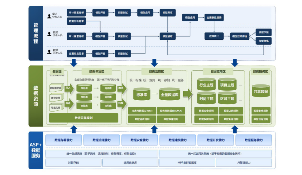 ASP+數(shù)據(jù)服務(wù):圍繞數(shù)據(jù)倉(cāng)庫(kù)、數(shù)據(jù)湖、湖倉(cāng)一體等技術(shù)體系,提供了全技術(shù)棧、全鏈路的大數(shù)據(jù)存儲(chǔ)、開(kāi)發(fā)、治理能力,打通了涵蓋數(shù)據(jù)集成、存儲(chǔ)、治理、建模、分析、挖掘和服務(wù)在內(nèi)的數(shù)據(jù)處理全生命周期管理能力,實(shí)現(xiàn)了各種數(shù)據(jù)資源的共享、協(xié)同、服務(wù)。