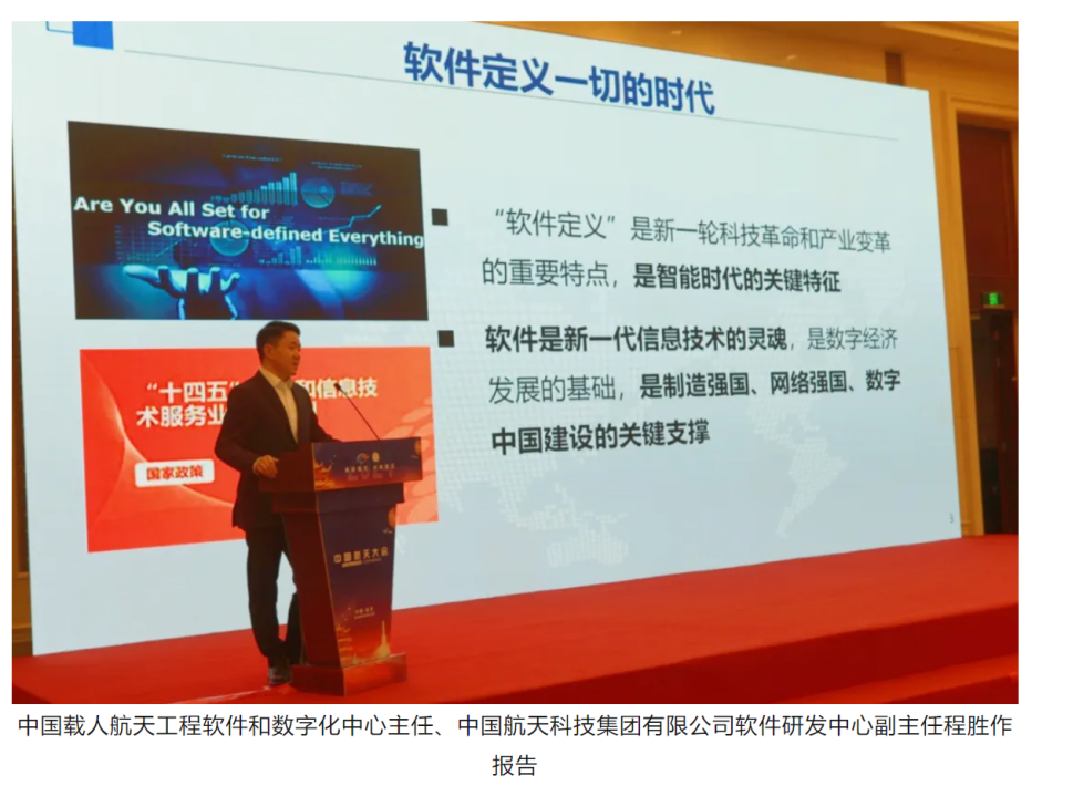 中國載人航天工程軟件和數(shù)字化中心主任、中國航天科技集團有限公司軟件研發(fā)中心副主任程勝作題為《構(gòu)建航天軟件研制新體系——打造航天軟件新質(zhì)生產(chǎn)力》的報告。闡述了國內(nèi)外軟件行業(yè)發(fā)展概況以及我國航天軟件面臨的嚴(yán)峻形勢和挑戰(zhàn),提出了建立智能時代航天軟件研制新體系的戰(zhàn)略規(guī)劃和體系規(guī)劃。