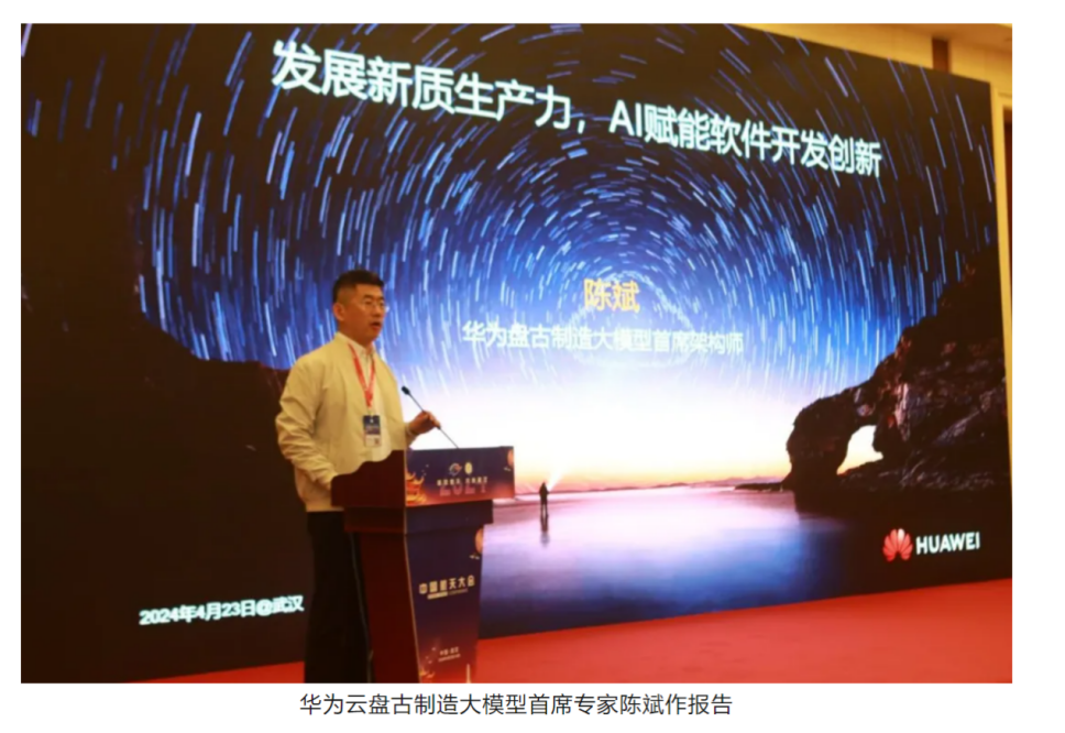 華為云盤古制造大模型首席專家陳斌作題為《發(fā)展新質(zhì)生產(chǎn)力、AI賦能軟件開發(fā)創(chuàng)新》的報告。回顧了軟件工程發(fā)展歷程,提出當(dāng)前軟件行業(yè)面臨的瓶頸與挑戰(zhàn)以及AI賦能軟件開發(fā),研發(fā)作業(yè)從代碼為中心走向模型為中心,從以人為主走向智能自主研發(fā)的智能化新階段。