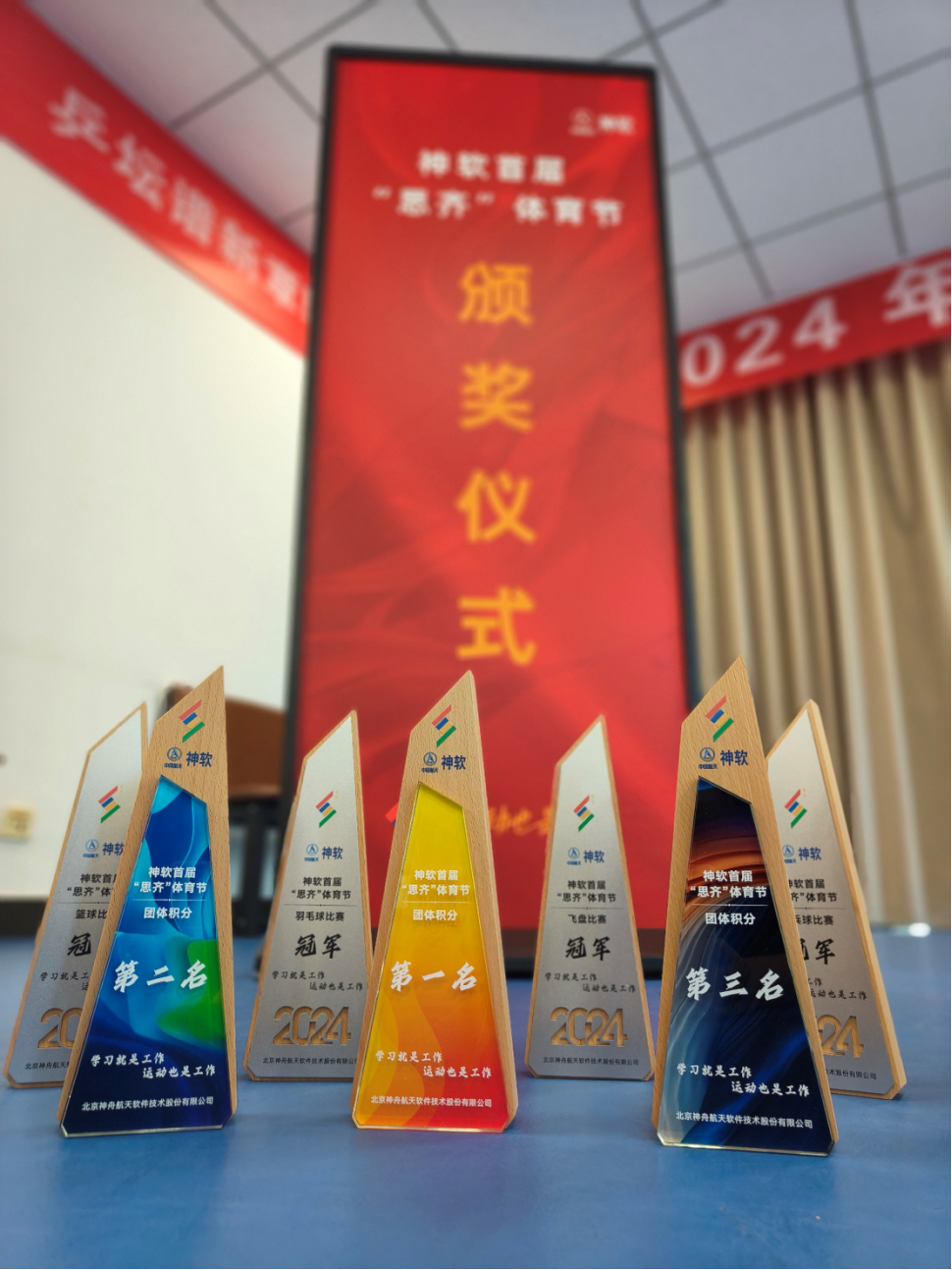 9月12日,神軟為體育節(jié)總積分前三名隊(duì)伍,及各項(xiàng)賽事前三名隊(duì)伍頒發(fā)了獎(jiǎng)杯及獎(jiǎng)品。第六、七黨支部聯(lián)合隊(duì)獲得團(tuán)隊(duì)總積分冠軍,第八黨支部獲得團(tuán)隊(duì)總積分亞軍,第三、四、十一黨支部聯(lián)合隊(duì)獲得團(tuán)隊(duì)總積分季軍。
