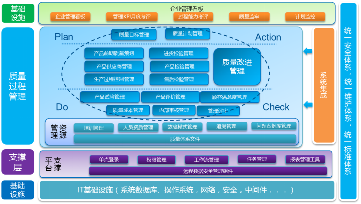 通過基于流程的、電子化及網絡化的工作平臺,實現質量管理工作的動態協同,提高質量工作的規范性和工作效率,保證質量管理體系的充分性、適宜性和持續有效性;